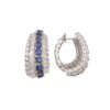 Elegant Oval Shaped Loop Earrings in 925 Sterling Silver with Blue Sapphire Corundum & White Cubic Zircons
